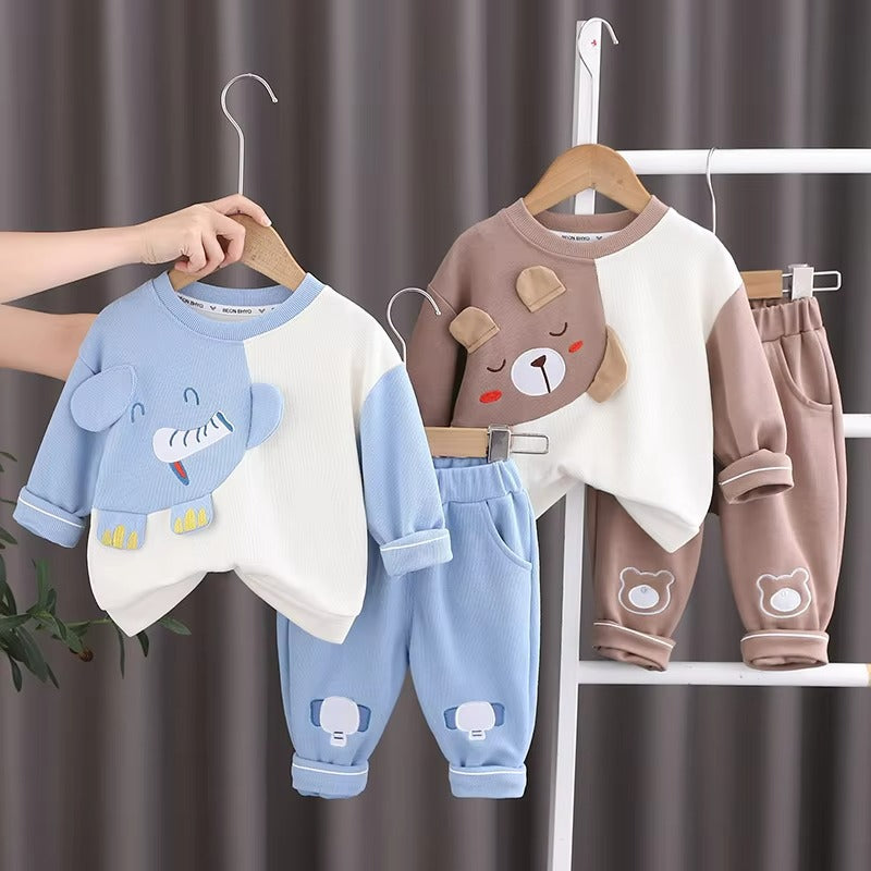 This children’s two-piece suit set features playful three-dimensional cartoon animals on a comfortable round neck design, perfect for both boys and girls. Made from soft, breathable fabric, it ensures all-day comfort and ease of movement, making it ideal for playtime or casual outings. The pack of two offers great value while keeping your little ones stylish and cozy.
