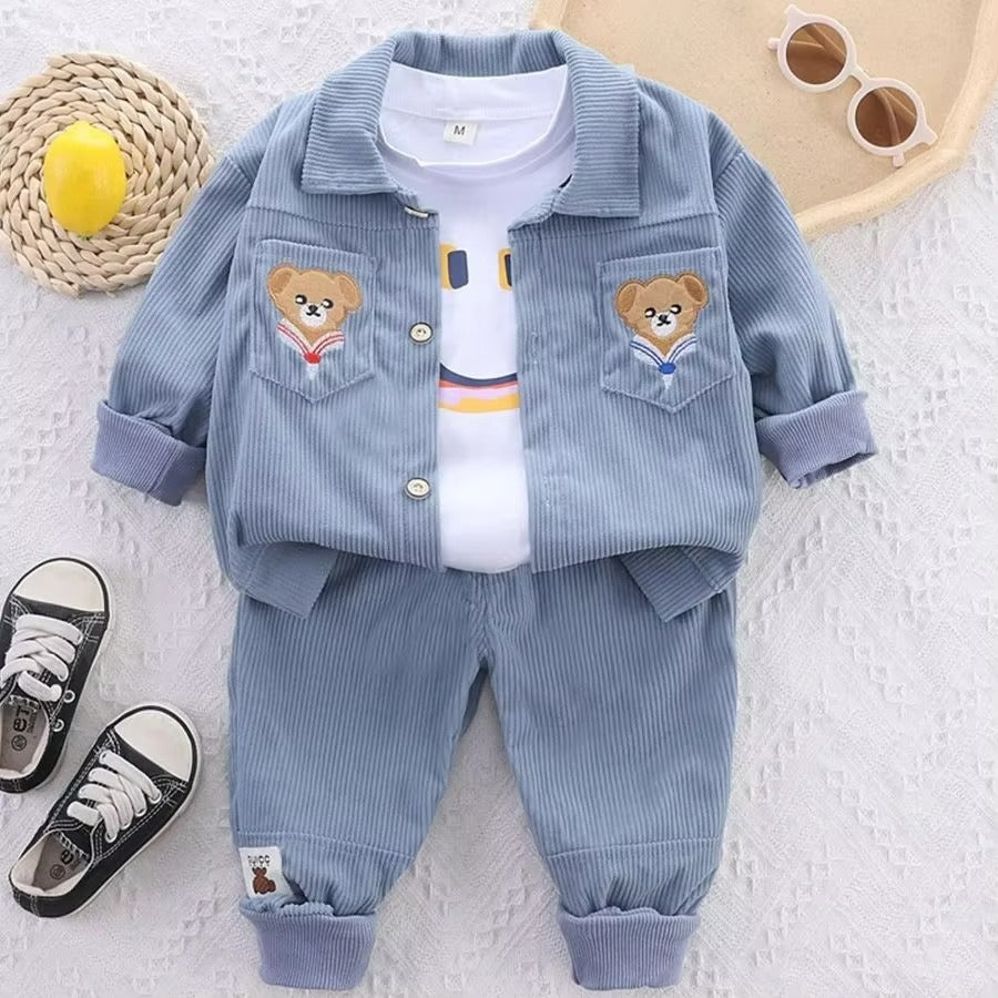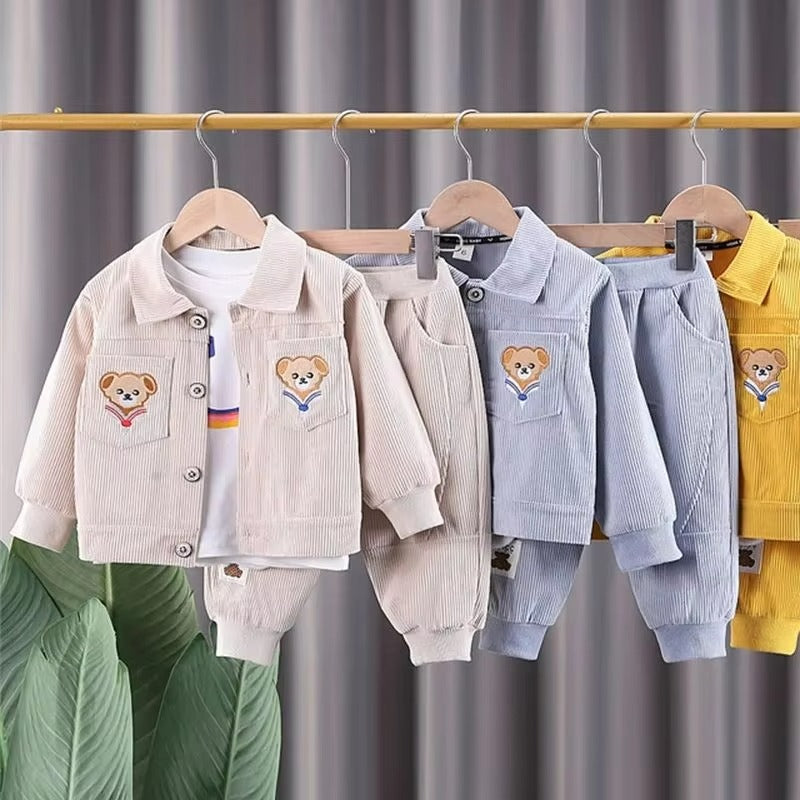 Keep your little ones cozy and stylish with this set of three adorable tracksuits. Each set includes a single-breasted jacket featuring a cute bear design and matching pants, designed for comfort and ease of wear. Perfect for active babies and kids, these outfits provide warmth and flexibility for everyday play. Crafted with soft, breathable materials, they ensure gentle care for delicate skin while keeping your child ready for any adventure.